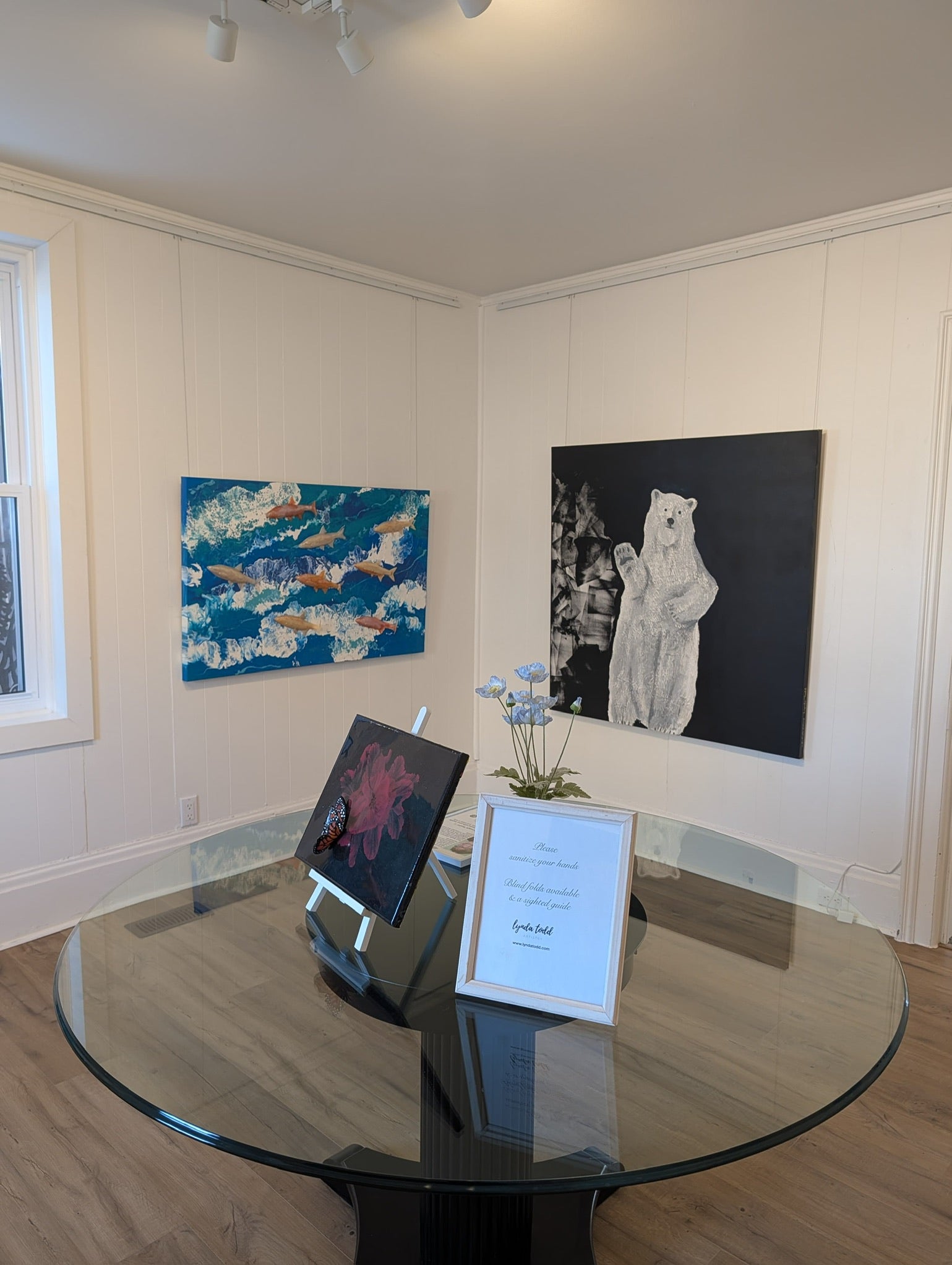 Her acclaimed series, Migration: Land, Air & Sea, explores the journeys of species such as salmon, caribou and the monarch butterfly, revealing both their beauty and vulnerability. With support from the Ontario Arts Council and the Province of Ontario, Lynda continues this work through Migration Continued, featuring the penguin, whale and polar bear. These works highlight the urgent need for conservation and the interconnectedness of all life.