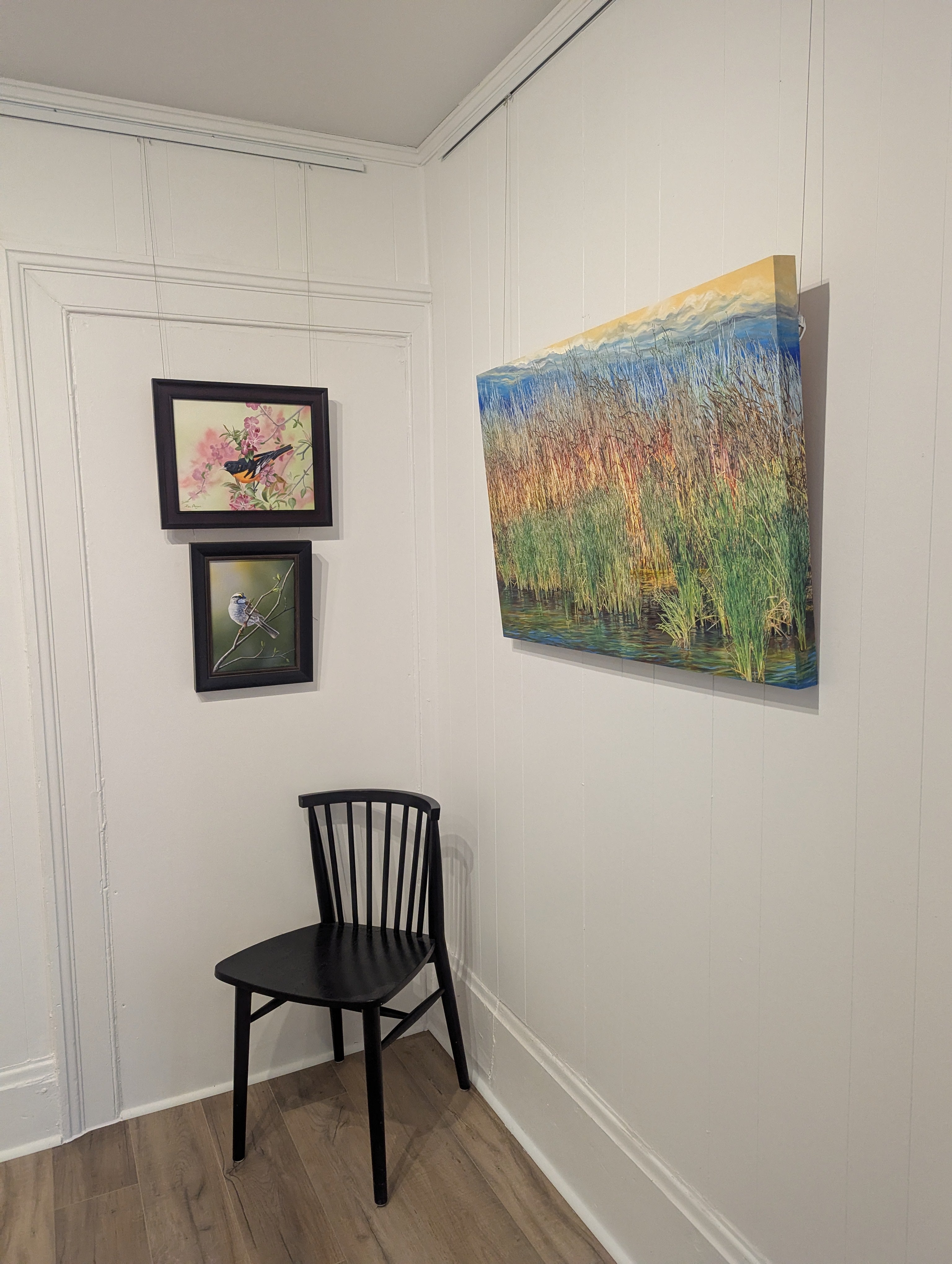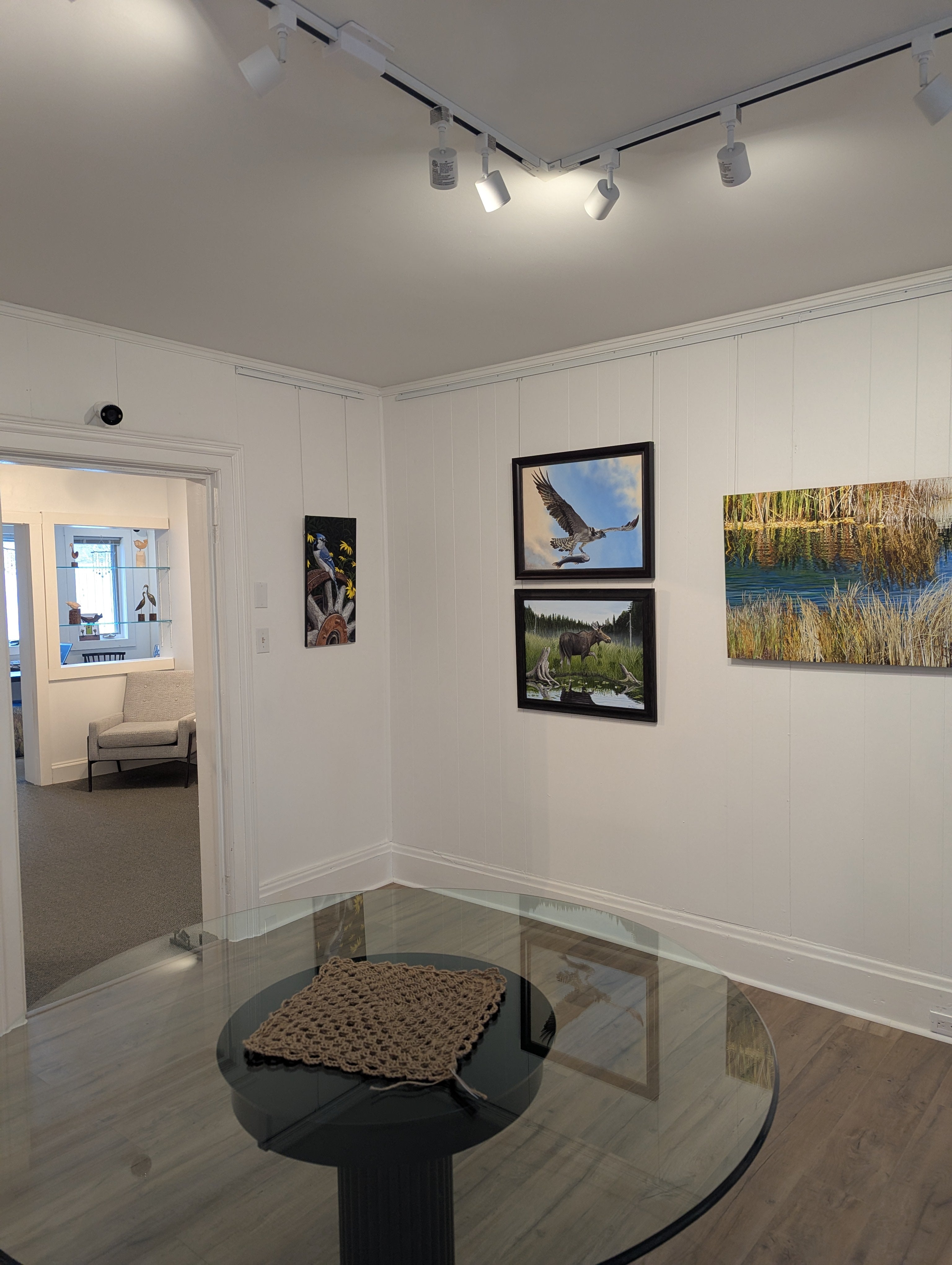 Step into Wild Threads & Woodland Whispers, an exhibition where the raw beauty of the natural world is woven together through two distinct artistic voices. Ron Plaizier, a celebrated wildlife artist, captures fleeting moments in nature with masterful precision, bringing birds, mammals, and landscapes to life in rich, evocative detail. Alongside him, Stephanie Ford Forrester explores the quiet poetry of marshes and forests, through textile-based mixed media, layering fabric, fiber, and paint to evoke the textures of the land.