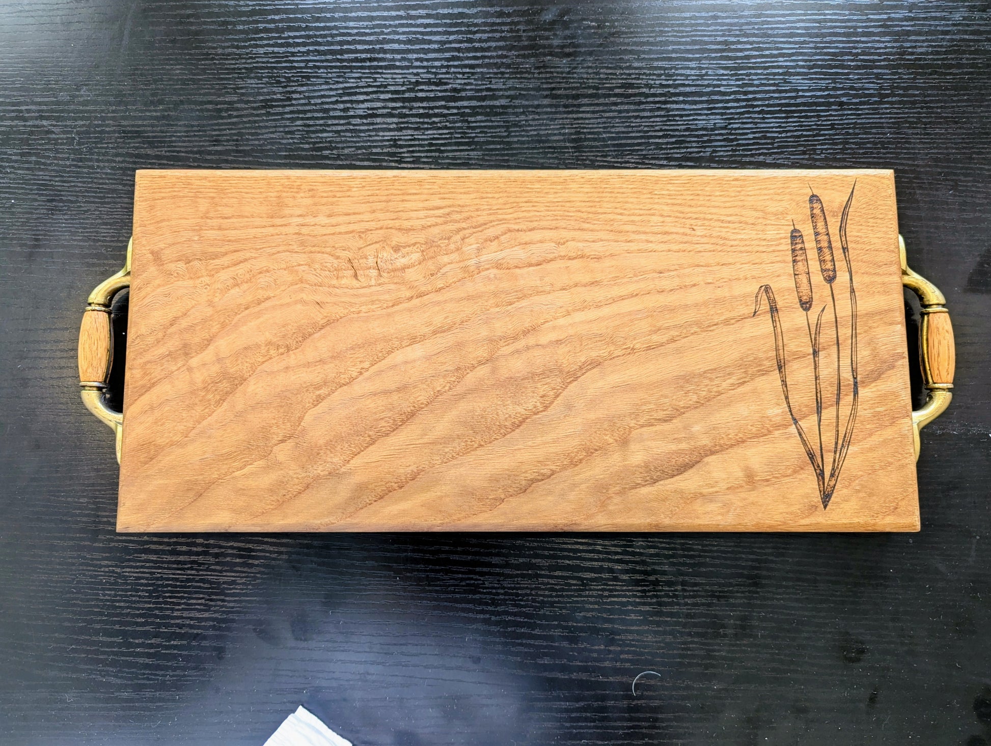 Locally harvested white oak, Bullrush pyrography by Gabrielle Blanshard